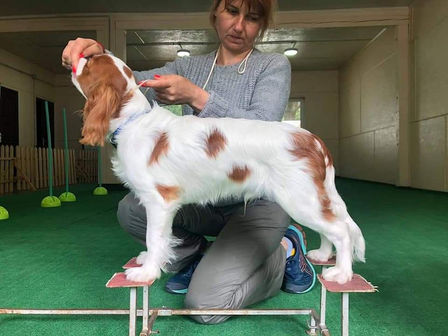 Окрас бленхейм, яркая девочка, поэтому и имя у нее - Золотая - EL DORADO. В бабушку Делисию - DELISIA DORADO SALTALINA.